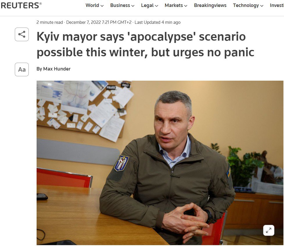 Мэр Киева Виталий Кличко предупредил о сценарии "апокалипсиса" для украинской столицы этой зимой, если российские авиаудары по инфраструктуре продолжатся.