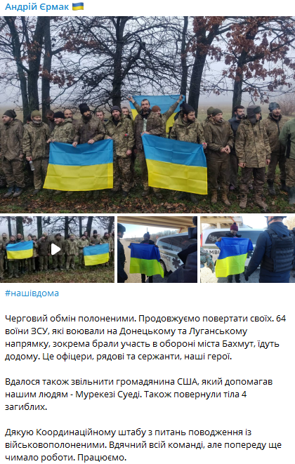 Также освободили гражданина США Муракези Суеди, который помогал украинцам, и вернули тела погибших.