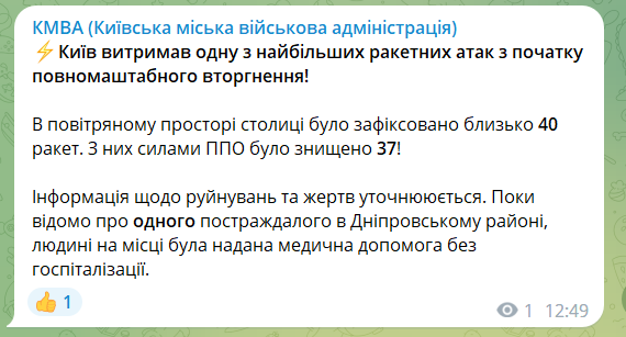 В пятницу, 16 декабря, Киев выдержал одну из самых больших ракетных атак с начала полномасштабного вторжения. Силы ПВО сбили 37 из 40 ракет, которые были зафиксированы в воздушном пространстве столицы.