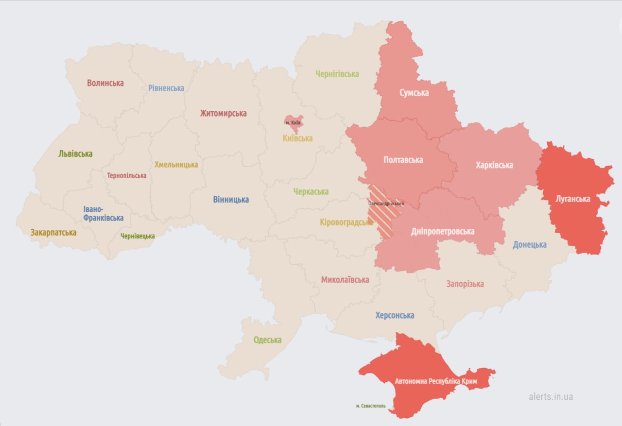 22.10 Воздушная тревога в восточных и части южных областей.