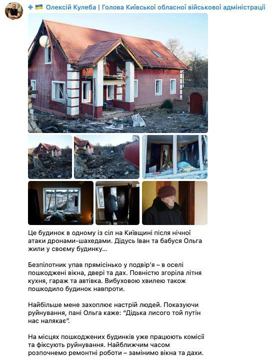 12.25 В результате ночной атаки беспилотников три человека получили ранения, девять домов повреждены. Об этом сообщил глава полиции Киевской области Андрей Небитов.