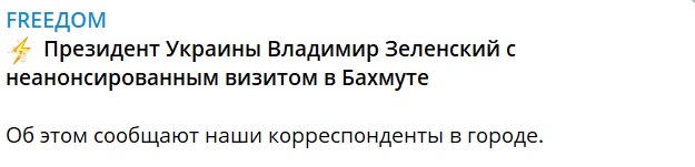 "Президент Украины Владимир Зеленский с неанонсированным визитом в Бахмуте", - пишет издание.