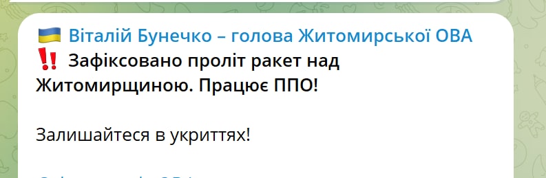 10:01 Снова взрывы и работа ПВО в Житомирской области.