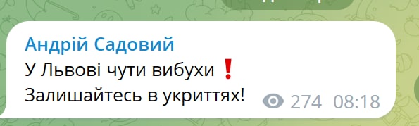 09:18 Мэр Львова Садовой подтвердил взрывы и призвал сидеть в укрытиях.
