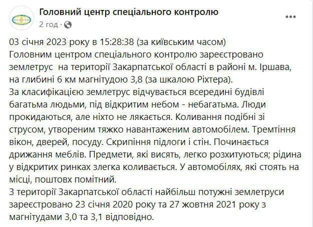 На Закарпатье произошло самое сильное за последние три года землетрясение