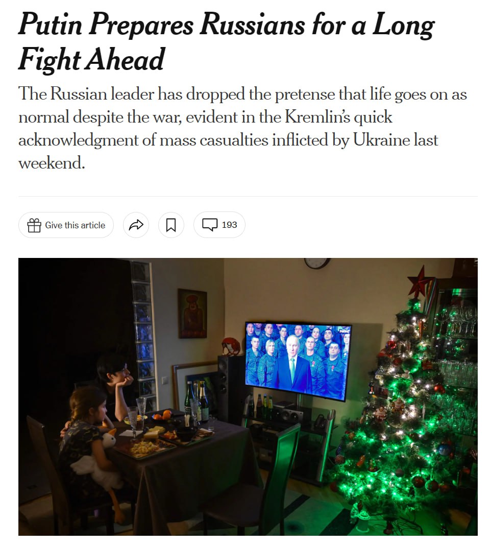 Кремль стремится подготовить военных и гражданских к длительным боям. Об этом свидетельствуют последние заявления Путина, а также "необычайно быстрое" признание российской властью потерь в Макеевке.