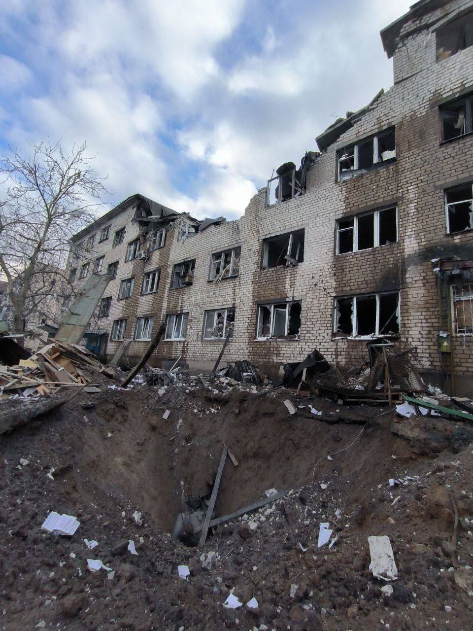 "Рядом с домами сейчас зияет огромная сорокометровая воронка и стоят поврежденные автомобили", - пишет Куртев.