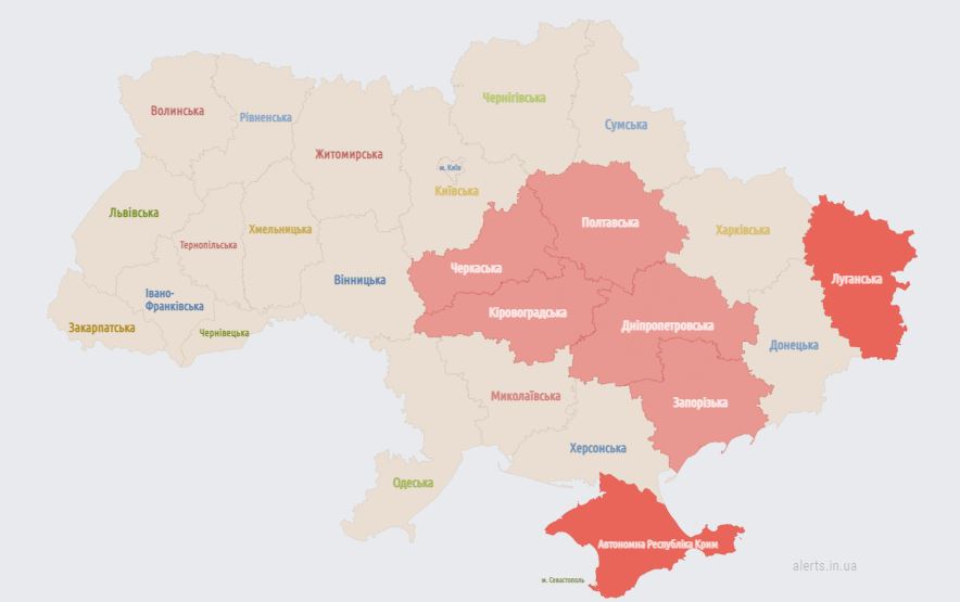 07.38 Тревога в восточных и центральных областях Украины.