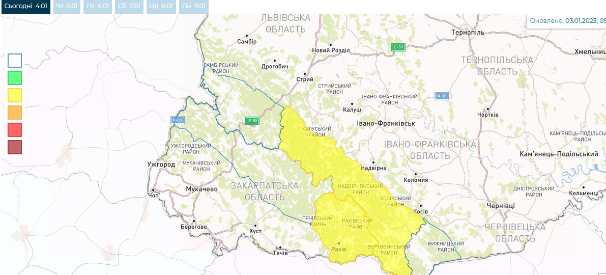 Также в Карпатах сохранятся повышенная опасность схода лавин. Желтый уровень опасности в Ивано-Франковской и Закарпатской области.
