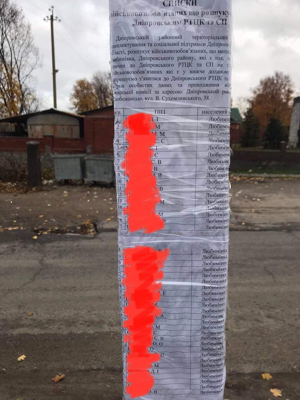 Вчера появились фото с такими списками в поселке Слобожанское. А сегодня телеграм-каналы публикуют аналогичный снимок из села Любимовка. Оба населенных пункта вблизи города Днепр.