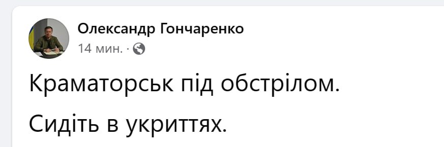 13.15 В Офисе президента пишут о двух ударов сегодня по Краматорску. По предварительным данным пострадавших нет.