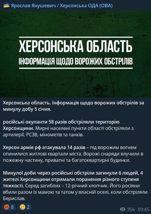 В пятницу, 6 января, в Украине идет уже 317-й день войны с РФ.