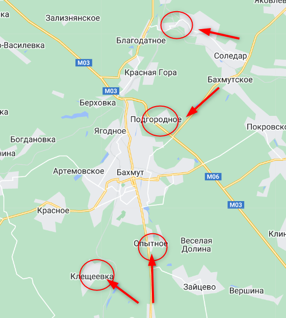 Из Подгородного на северо-запад ведет дорога, которая выходит на трассу Бахмут - Славянск - одна из основных артерий снабжения Бахмута. Очевидно, ее и хотят перерезать россияне, атакуя и Подгородное, и расположенные рядом Благодатное и Красную гору.