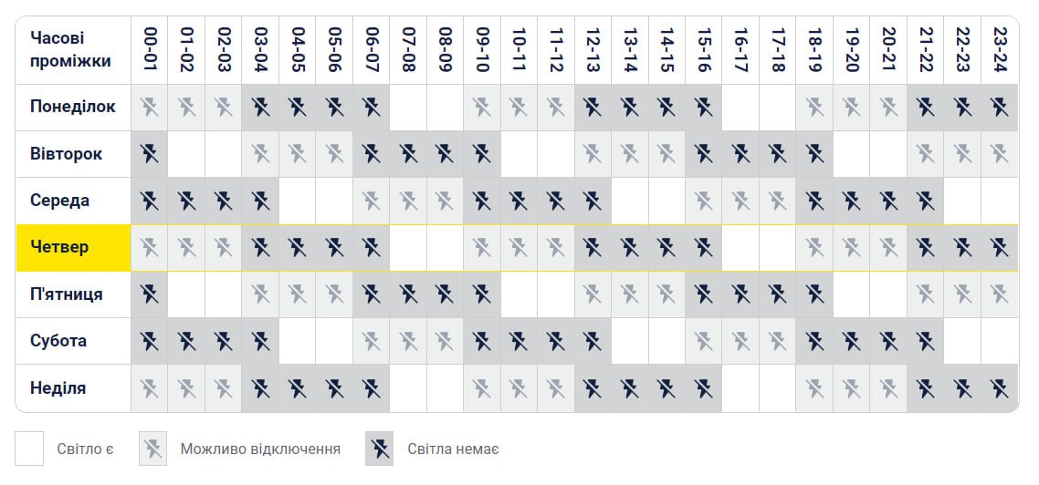Сами же графики не изменились, как и раньше, потребителю гарантируют 2 часа света, затем 3 часа вероятных и 4 часа обязательных отключений.