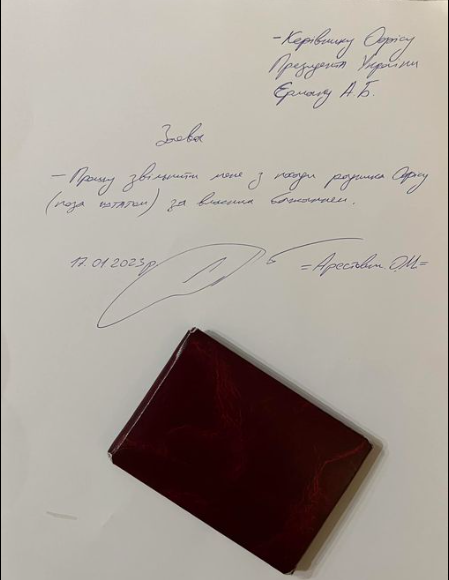 Об этом 17 января он написал у себя в Facebook, прикрепив в подтверждение своих слов заявление на имя главы Офиса президента Андрея Ермака.