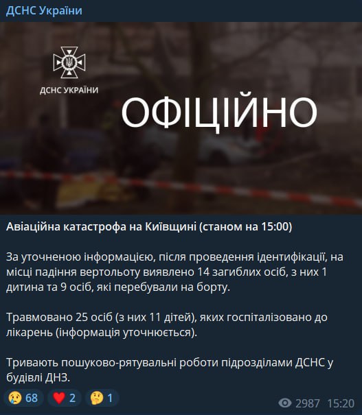 Потом появилась официальная информация ГСЧС по авиакатастрофе в Броварах.