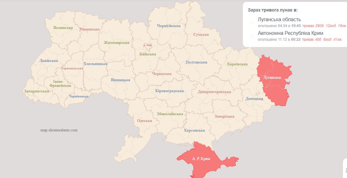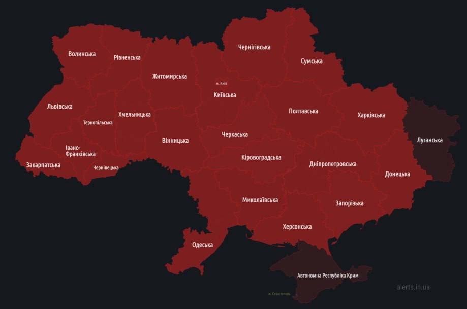09.42 Регионы на востоке Украины в зоне воздушной тревоги.