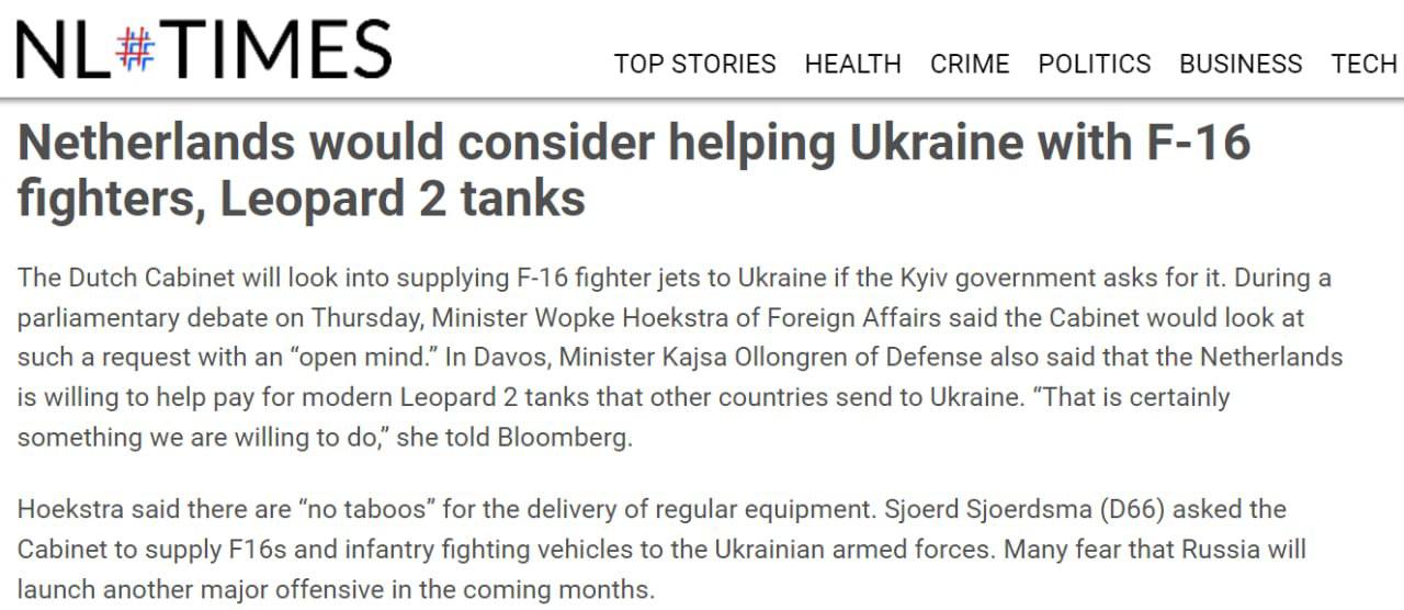 21:30 Глава МИД Польши Збигнев Рау раскритиковал «Рамштайн» за отсутствие решения по танкам.