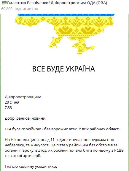 07.30 Ночью в Днепропетровкой области обошлось без обстрелов.
