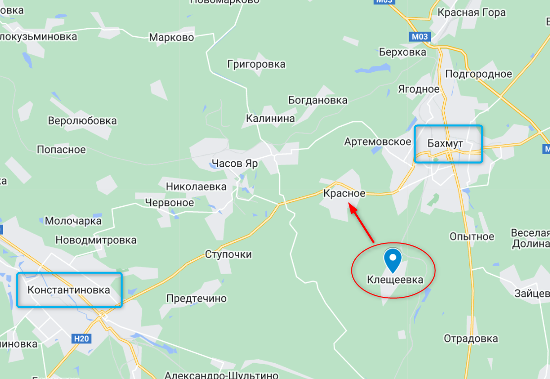 Ивановское (бывшее Красное) - село на трассе Константиновка - Бахмут, недалеко от Клещеевки, о захвате которой вчера заявляла ЧВК "Вагнер". Украина этой потери не подтверждала. Сама Клещеевка в сводке Генштаба упоминается как село, которое подвергалось обстрелам.