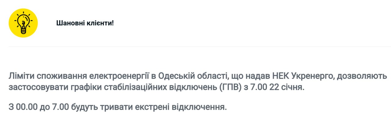 08.22 В Киеве, Одессе и Днепре - с утра плановые отключения света.
