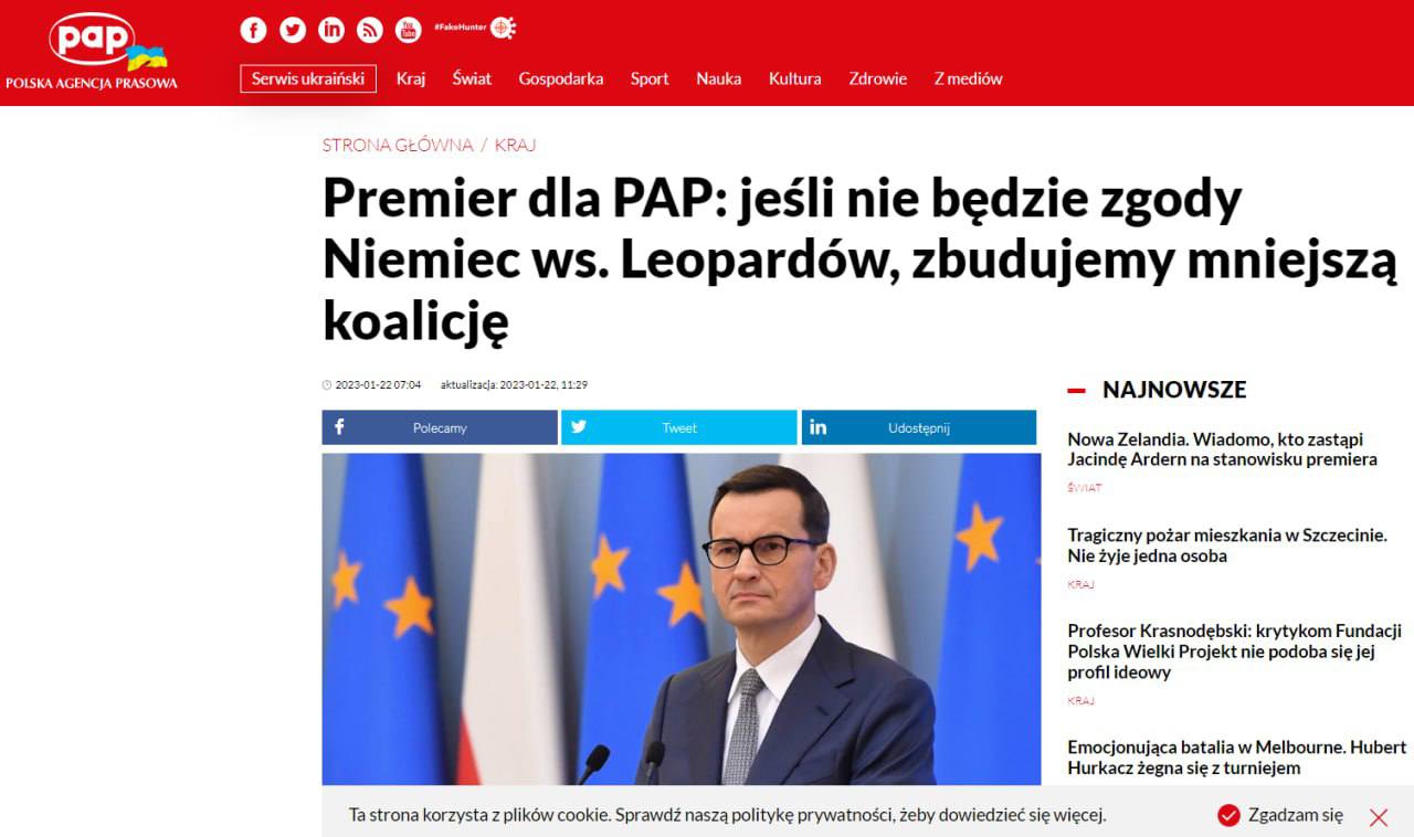 Накануне польские власти заявили, что найдут способ передать Украине немецкие танки Leopard 2 даже без разрешения Германии.