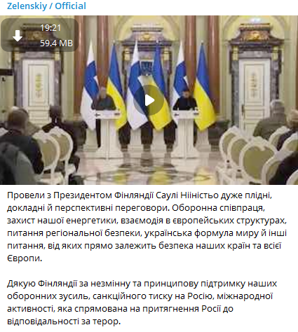 "Приветствую в Украине президента Финляндии Саули Ниинисте. Украина ценит поддержку Финляндии и финского народа. Спасибо за этот визит!", - говорится в сообщении президента.