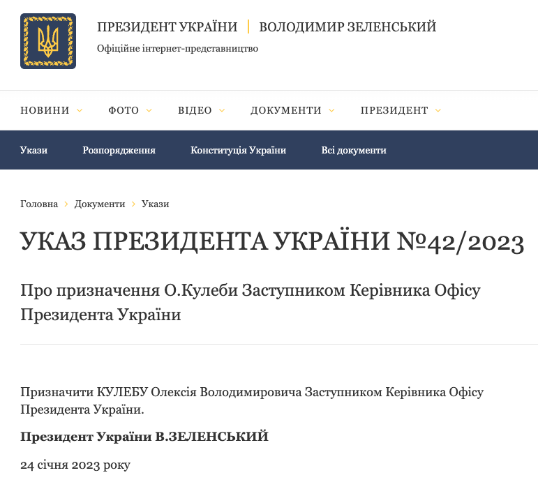 Бывший глава Киевской ОВА Алексей Кулеба назначен заместителем главы Офиса президента.