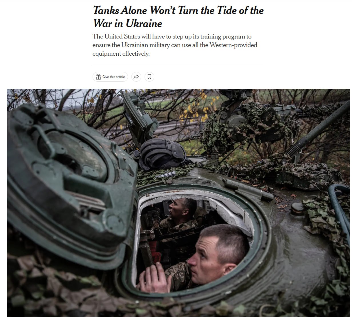 09.49 "Одними танками ход войны в Украине не переломить" - так называется аналитическая статья в New York Times.