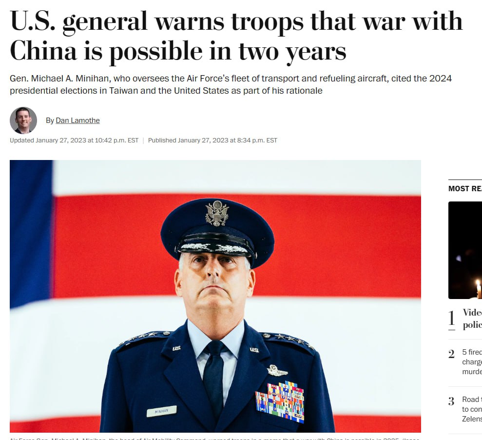 10.49 Китай может начать войну с Соединенными Штатами через два года, предсказал высокопоставленный генерал ВВС Майкл Минихэн.