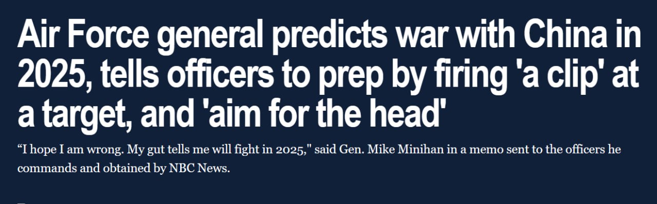 Генерал Минихэн, занимающий пост главы Командования воздушной мобильности (курирует парк транспортных и заправочных самолетов) предупредил персонал, чтобы он ускорил подготовку к потенциальному конфликту "пока не поздно".