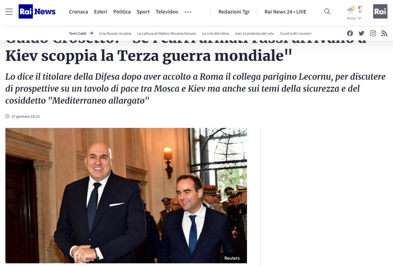 11.14 Министр обороны Италии Гвидо Крозетто заявил, что российские танки на улицах Киева гарантируют Третью мировую войну.