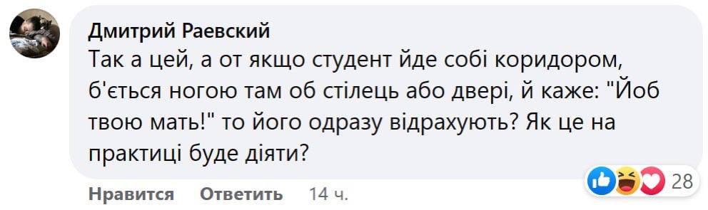 "А вот если студент идет себе по коридору, бьется ногой об стул или дверь, и говорит: "@б твою мать!" то его сразу отчислят? Как это будет на практике действовать?" - интересуется журналист Дмитрий Раевский.