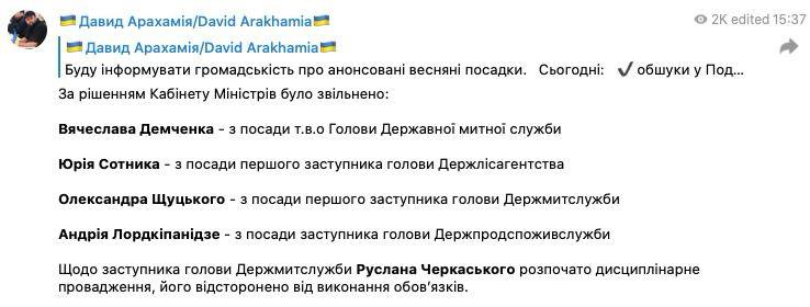 Ранее глава фракции "Слуга народа" Давид Арахамия анонсировал масштабные увольнения в руководстве украинской таможни.