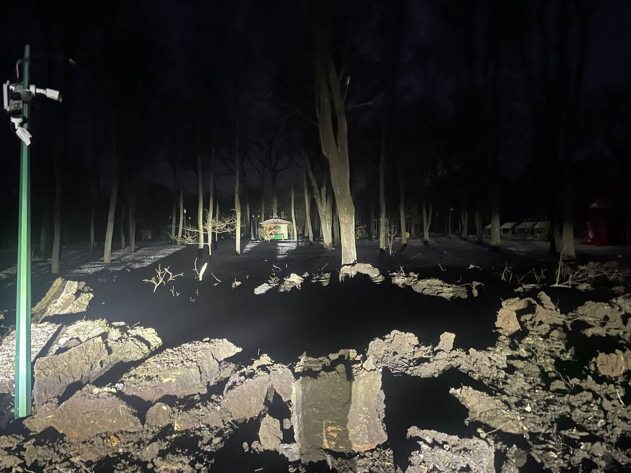 13.55 Появилось видео воронки на месте ночного удара по харьковскому парку Горького.