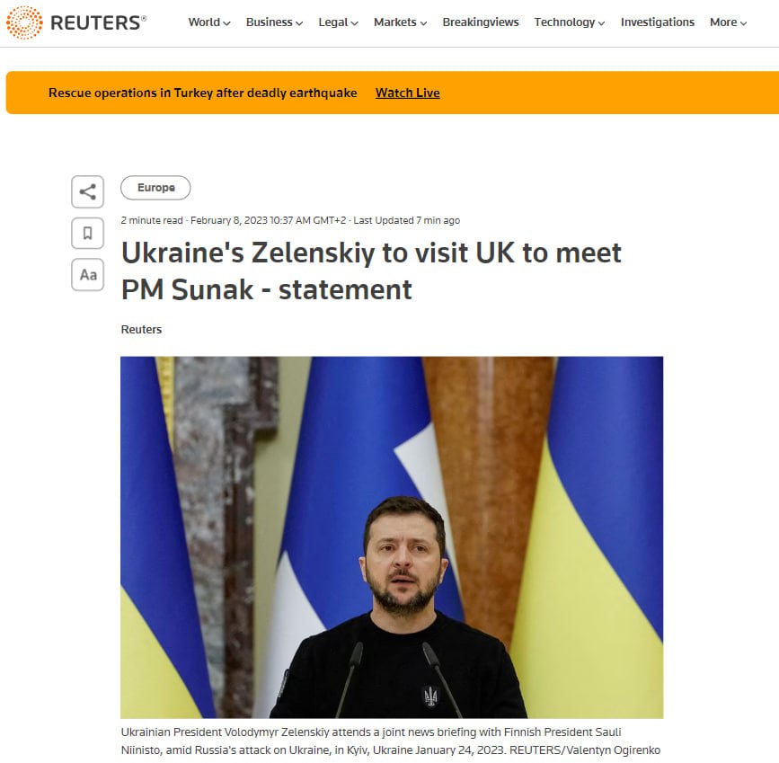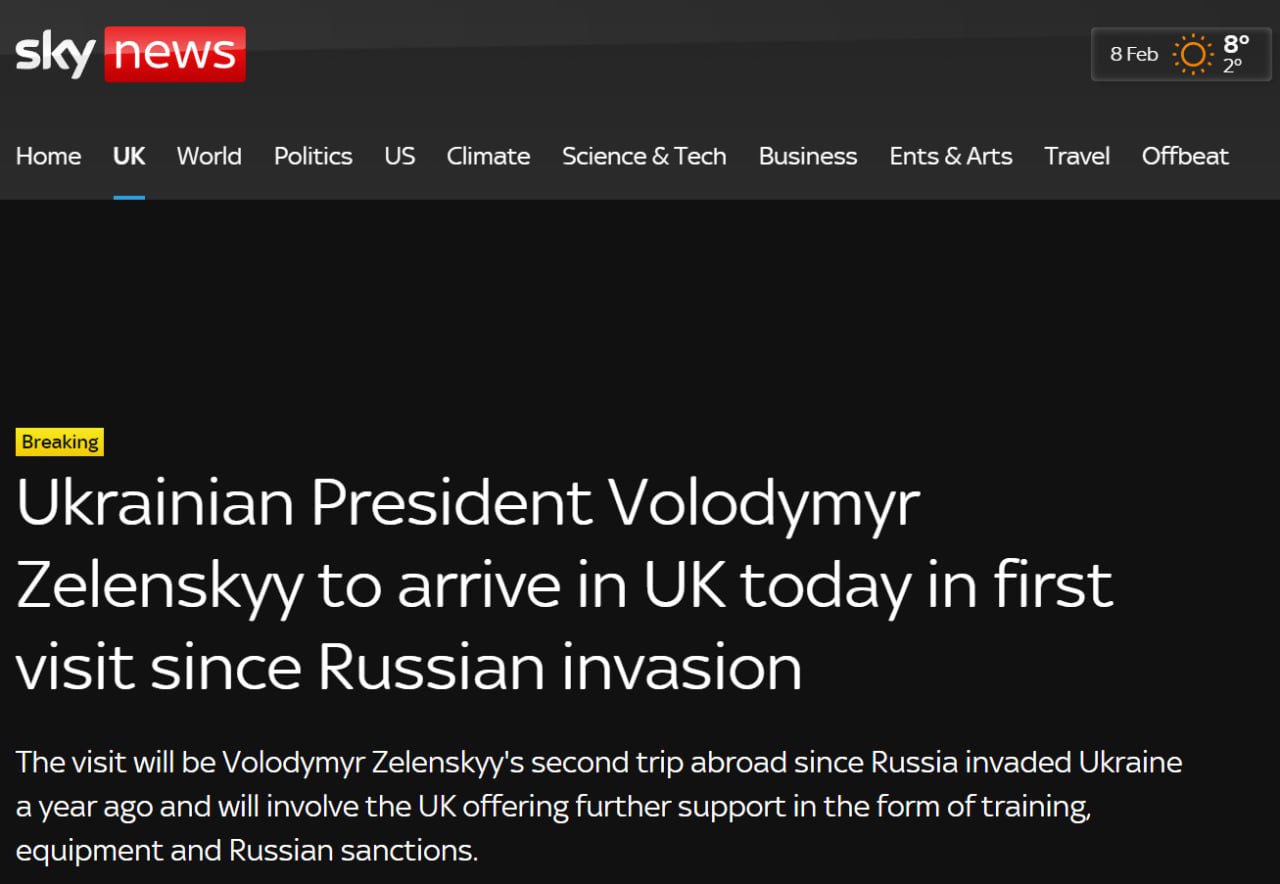 Это первый визит украинского президента в Великобританию с начала российского вторжения почти год назад.