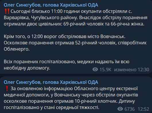 Также из-за обстрела Варваровки Чугуевского района ранен 69-летний мужчина и 66-летняя женщина.