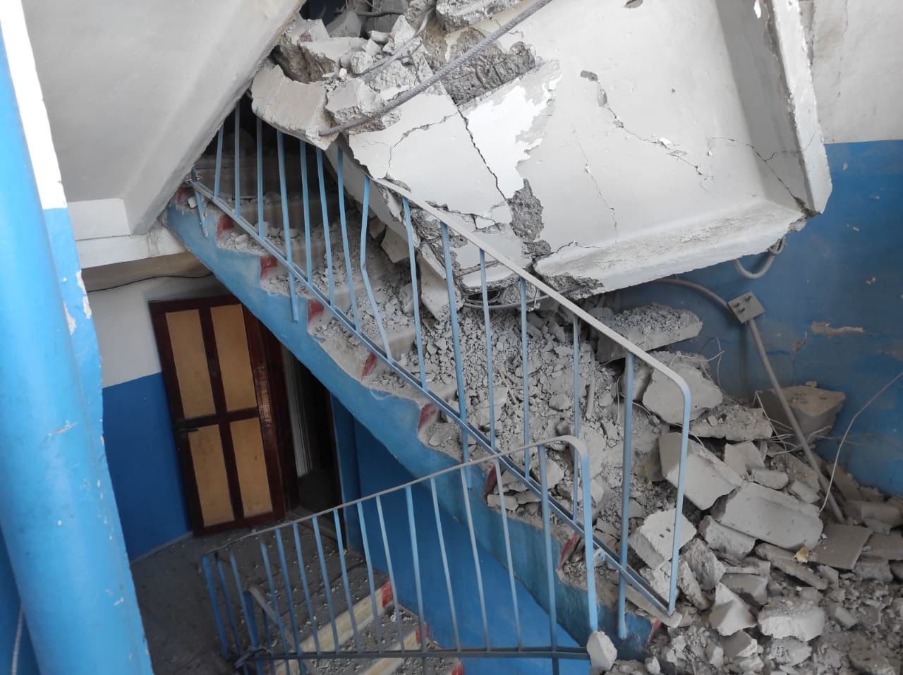 Полностью разрушены лестничные пролеты между 9 и 6 этажами, пробита стена, в большинстве квартир выбиты окна, сообщают в Донецкой ОГА.