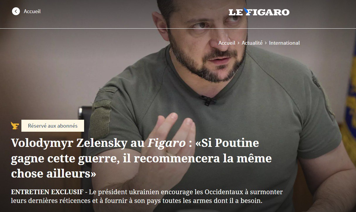 23:02 Владимир Зеленский прибыл с визитом во Францию.