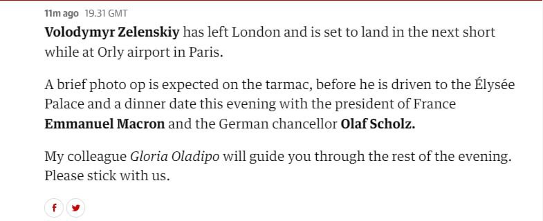Президент Владимир Зеленский вылетел из Лондона в Париж.