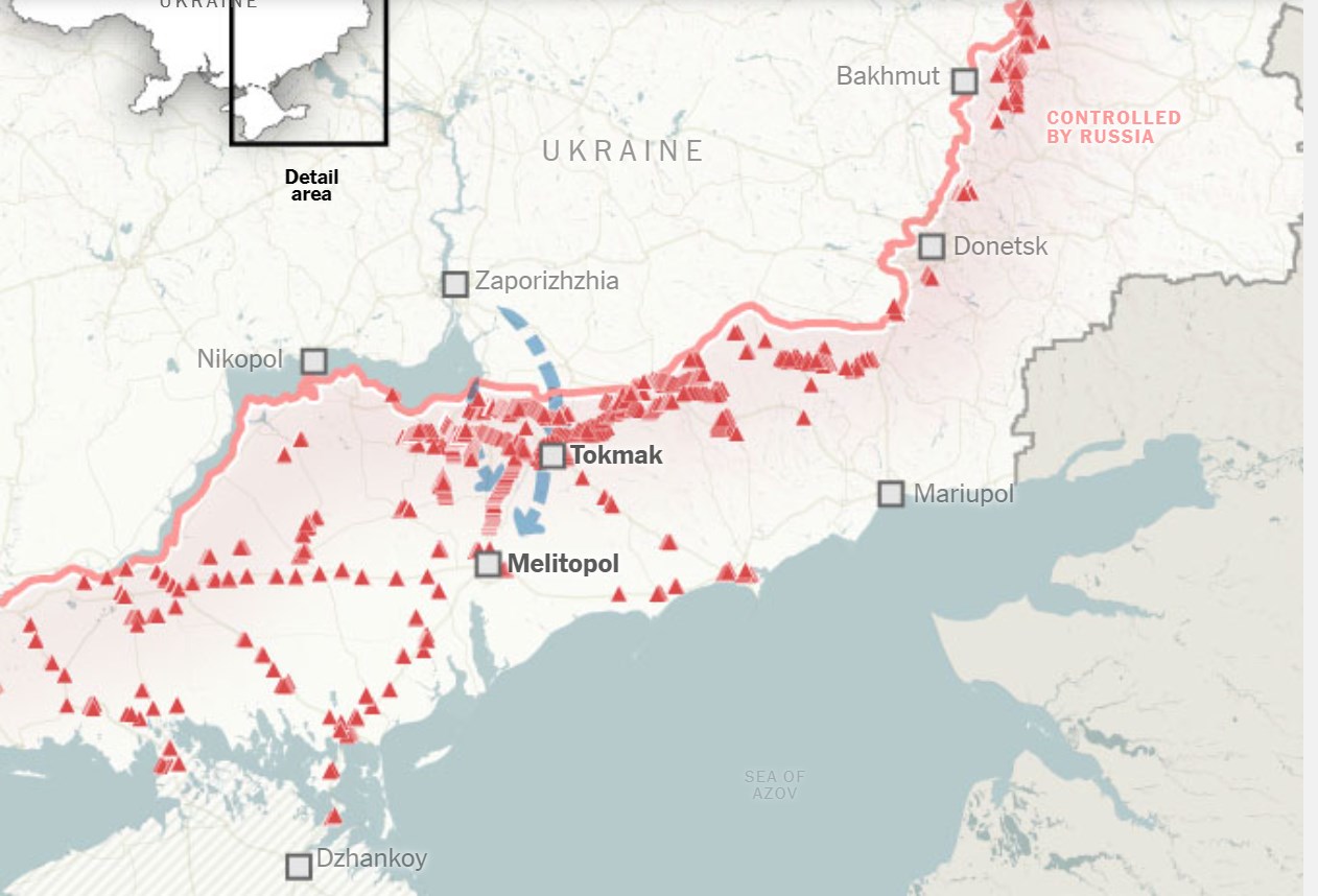 "Но двигаться вперед будет непросто. Россия выстроила оборону по всей линии фронта, а самая густая сеть траншей и противотанковых ловушек находится вокруг Мелитополя", - пишет издание.