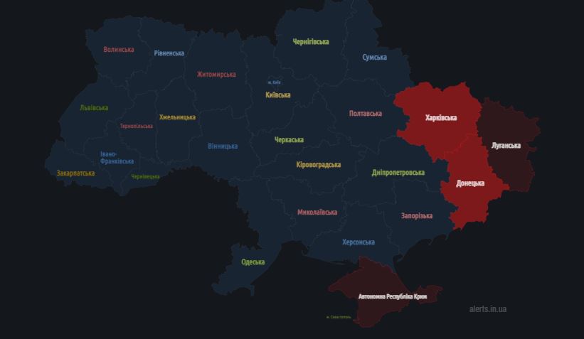 23:25 Воздушная тревога также в Харьковской и Донецкой областях.
