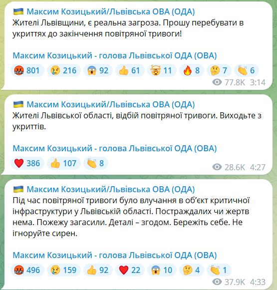 Об этом в телеграм-канале сообщил глава Львовской ОВА Максим Козицкий.