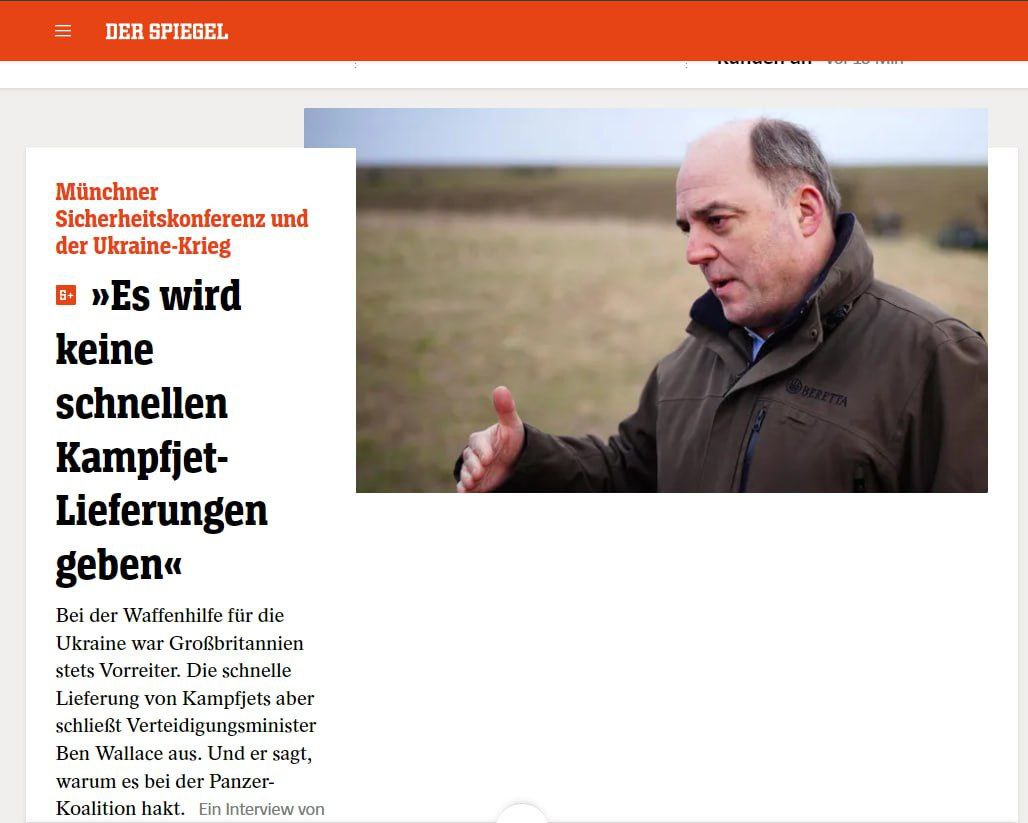 Об этом министр обороны Великобритании Бен Уоллес рассказал в интервью Spiegel.
