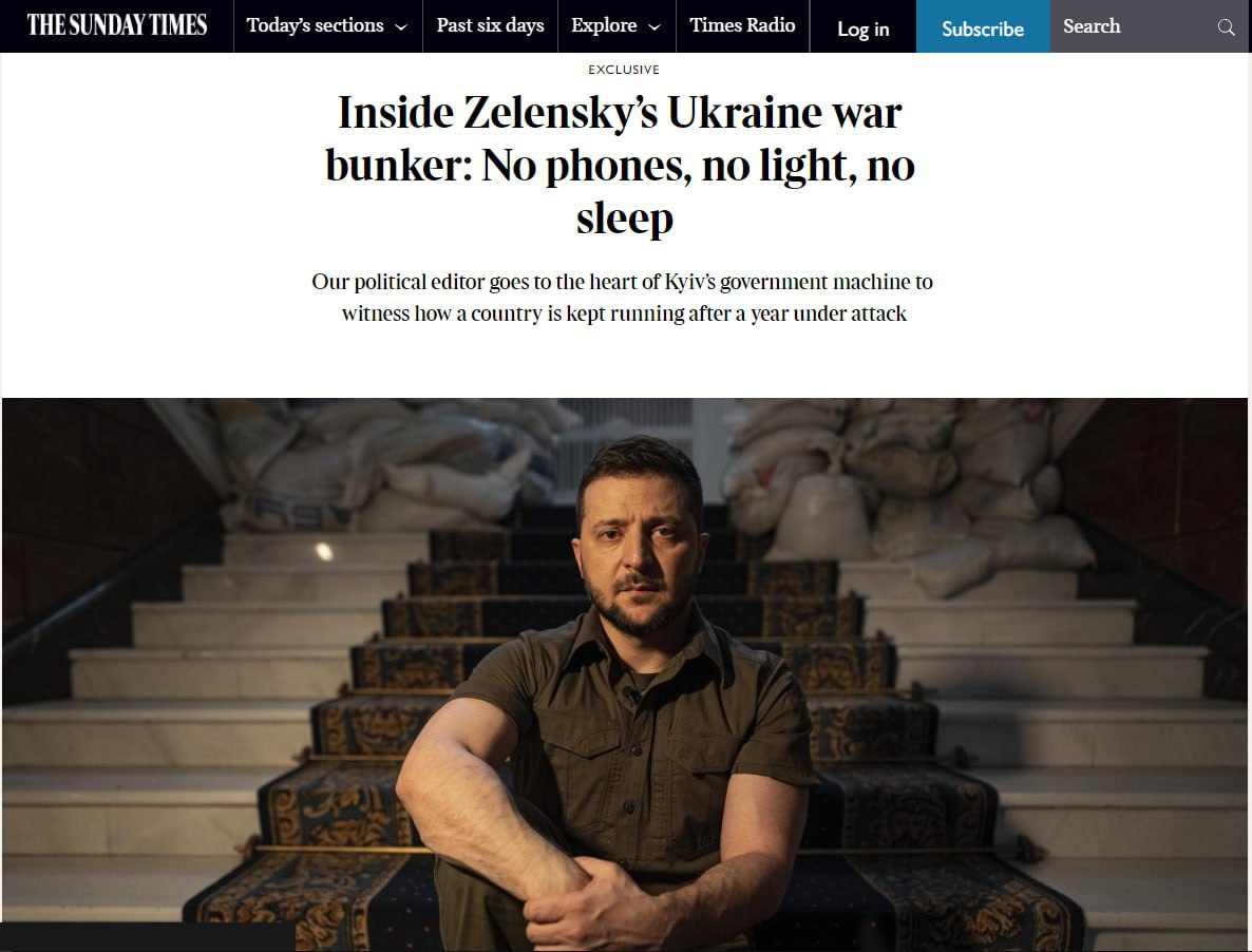 12:02 Еще о жизни в подземном бункере президента Украины из репортажа The Times, который мы сегодня уже цитировали.