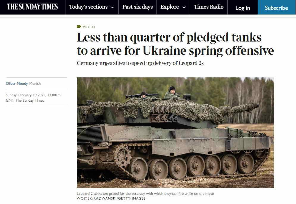 13:16 К апрелю Украина, похоже, получит только 50 танков. Это лишь около четверти от общего количества танков, которые ей пообещали предоставить партнеры, сообщает The Times.
