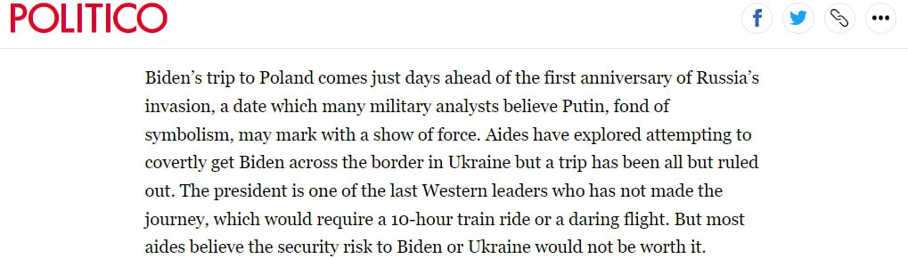 09.55 В западной прессе пишут, как помощники Байдена рассматривали вопросы тайной переправки президента США в Украину, но в результате передумали из-за высоких рисков.