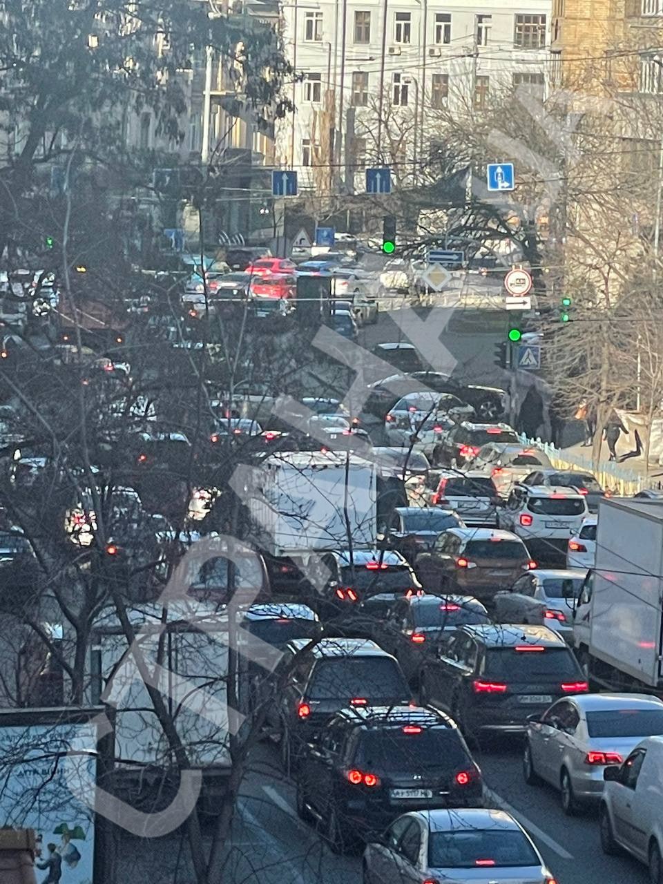 По данным пабликов, закрыт Шулявский мост, пробка на Святошино и Нивках. Ограничено движение скоростного трамвая, закрыт проспект Берестейский, также не пускают на Воздухофлотский мост. Перекрыты улицы Гетьмана и бульвар Леси Украинки, а также проспект Победы.