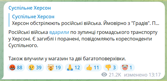 Россияне ударили по остановке общественного транспорта в Херсоне. Есть жертвы