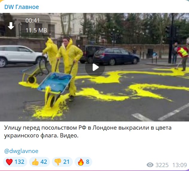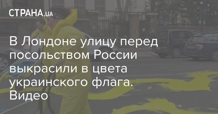 В Лондоне улицу перед посольством России выкрасили в цвета украинского флага. Видео